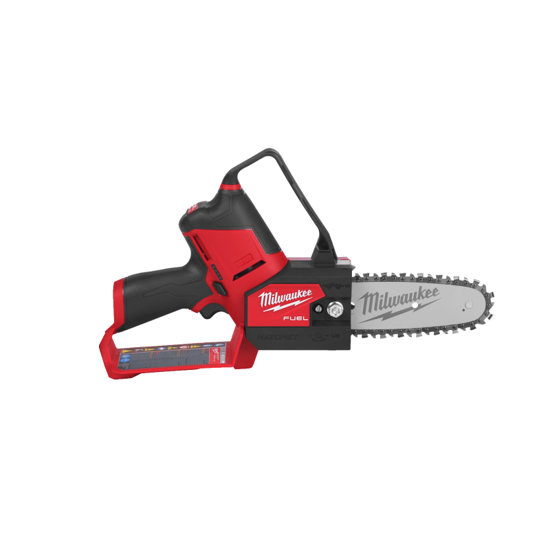 La sierra de poda M12 FUEL™ HATCHET™ ofrece un control y acceso excepcionales, tiene la potencia para cortar maderas duras de hasta 75mm y ofrece hasta 120 cortes por carga con una batería M12™ de 4.0Ah | Diseñada para satisfacer las necesidades ergonómicas, de rendimiento y durabilidad de los profesionales del mantenimiento de jardines | Con un peso de 2,3kg y un diseño compacto, ofrece un mayor control y manejo en lugares de difícil acceso | El tensor de cadena de fácil acceso garantiza un ajuste rápido de la tensión de la cadena | Depósito de aceite antiderrame con depósito de fácil acceso y con ventana de visualización transparente | El gatillo de velocidad variable permite al usuario tener un control total sobre la curva de potencia | El dentado de agarre metálico protege el cárter y mejora el apoyo en el trabajo | Engrasador automático para facilidad de uso y lubricación adecuada de la cadena | La llave de servicio se almacena en la propia sierra de poda para facilitar el mantenimiento | Cadena y barra de Oregon de 15cm (6″), llave de servicio y funda de plástico para barra | El ADN de nuestro sistema FUEL™ redefine el equilibrio de las tecnologías a batería. El motor sin escobillas MILWAUKEE® POWERSTATE™, la batería REDLITHIUM™ y la electrónica REDLINK PLUS™ ofrecen potencia, autonomía y durabilidad sin igual | Sistema flexible de baterías: funciona con todas las baterías M12™ de MILWAUKEE®