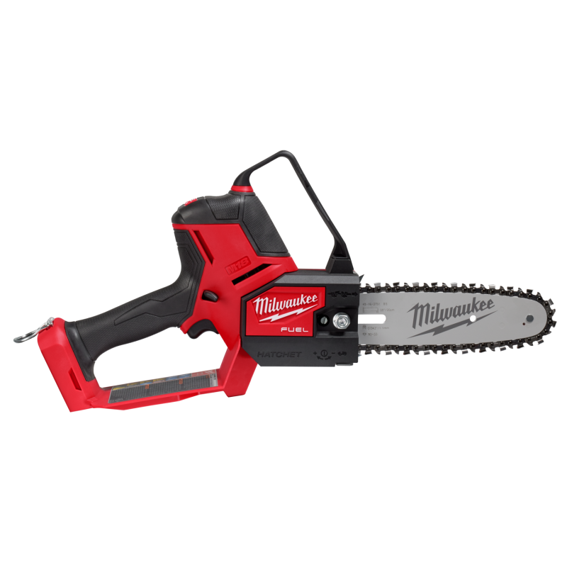 La sierra de poda M18 FUEL™ HATCHET™ con barra de 20cm proporciona una potencia y un par motor excepcionales para cortar maderas duras sin parar | Diseñada para satisfacer las necesidades de ergonomía, rendimiento y durabilidad de los profesionales de mantenimiento | Diseño compacto para un mayor control y maniobrabilidad | Hasta 180 cortes en madera de cedro de 100mm x 100mm con una batería M18™ HIGH OUTPUT™ de 5.5Ah para una productividad excepcional | El tensor de cadena de fácil acceso garantiza un ajuste rápido de la tensión de la cadena | El gatillo de velocidad variable permite al usuario tener un control total sobre la curva de potencia | El dentado de agarre metálico protege el cárter y mejora el apoyo en el trabajo | Engrasador automático para facilidad de uso y lubricación adecuada de la cadena | Llave de servicio guardada en la propia herramienta y anilla para la fijación rápida de un sistema anticaídas para trabajos en altura | El ADN de nuestro sistema FUEL™ redefine el equilibrio de las tecnologías a batería. El motor sin escobillas MILWAUKEE® POWERSTATE™, la batería REDLITHIUM™ y la electrónica REDLINK PLUS™ ofrecen potencia, autonomía y durabilidad sin igual | Sistema flexible de baterías: funciona con todas las baterías M18™ de MILWAUKEE®