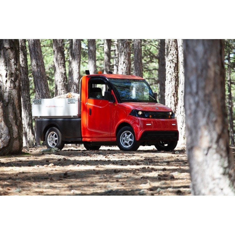 El Pilot Car PC-1000 es el vehículo eléctrico ideal para logística urbana y mantenimiento industrial. Con dirección asistida, faro rotativo, radio integrada y puerto USB, ofrece autonomía de hasta 220 km, cero emisiones y gran capacidad de carga.