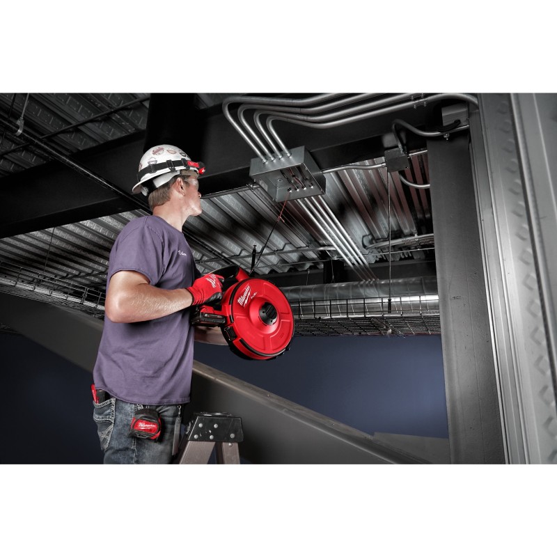 El pasacables M18 FUEL™ es el primer pasacables a batería profesional del mercado | El motor sin escobillas POWERSTATE™ ofrece la posibilidad de tirar de hasta 72m de cable | AUTO-RUN™ recogida automática, proporcionando mayor velocidad y menor fatiga para el usuario | Menor cansancio y fatiga para el usuario gracias al tirador automático, especialmente al realizar trabajos por encima de la cabeza | Cambio rápido de los tambores, con 4 opciones disponibles, guía de acero de 36 y 72m y guía no conductora de 30 y 60m | Diseño del tambor con sistema anti enganche, para un paso o tirado más suave | Velocidad controlada para un máximo control durante el trabajo de paso y tirado de la guía | El ADN de nuestro sistema FUEL™ redefine el equilibrio de las tecnologías a batería. El motor sin escobillas MILWAUKEE® POWERSTATE™, la batería REDLITHIUM™ y la electrónica REDLINK PLUS™ ofrecen potencia, autonomía y durabilidad sin igual | Sistema flexible de baterías: funciona con todas las baterías M18™ de MILWAUKEE®