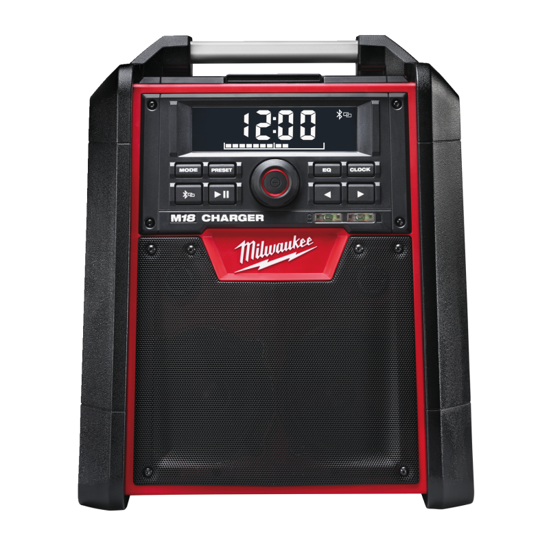 Construido con cargador de carga rápida para cualquier batería M18™ o dispositivos electrónicos a través del puerto USB | Receptor Bluetooth® digital: reproduce música de hasta 30m de distancia desde el teléfono, ordenador o tableta | AC/DC versatilidad: alimentado por baterías MILWAUKEE® M18™ o toma de corriente alterna | Exclusivo sintonizador AM / FM con procesador digital que ofrece mayor precisión y claridad de la señal de recepción | Altavoz de gran calidad y amplificador de 40W produce un sonido rico y completo | Compartimento auxiliar sellado para proteger al MP3 y a otros dispositivos de audio | Jaula antivuelco reforzada y asas de metal que protege contra las condiciones del lugar de trabajo abusivas | Ecualizador personalizable y preestablecido de 10 estaciones | Toma de corriente USB protegida 2.1A. Carga dispositivos tanto en modo AC y DC | Se suministra con cable de entrada auxiliar, 2 pilas AAA. Las baterías MILWAUKEE® se venden por separado | Sistema flexible de batería: funciona con todas las baterías MILWAUKEE® M18™
