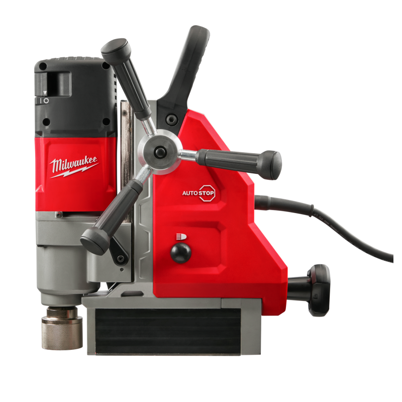 Potente motor de 1.200W con velocidad de taladrado optimizada | Caja de engranajes de 2 velocidades para optimizar la velocidad de taladrado con 475 y 730rpm | Sistema AUTOSTOP™: detecta el exceso de rotación y reduce automáticamente la potencia de perforación para proteger al usuario | Imán permanente con 8.890N de fuerza de fijación que evita la desactivación accidental, garantizando una mayor protección y fácil alineamiento | Máxima capacidad de perforación de 41mm con fresa y brocas tradicionales con eje de 13mm | Fijación Weldon 19mm con fijación sin llave para un cambio rápido y fácil del accesorio | Carrera de 146mm que permite el uso de diferentes accesorios | Puño desmontable que permite el uso en el lado izquierdo y derecho | LEDs de alta intensidad para iluminar el área de trabajo