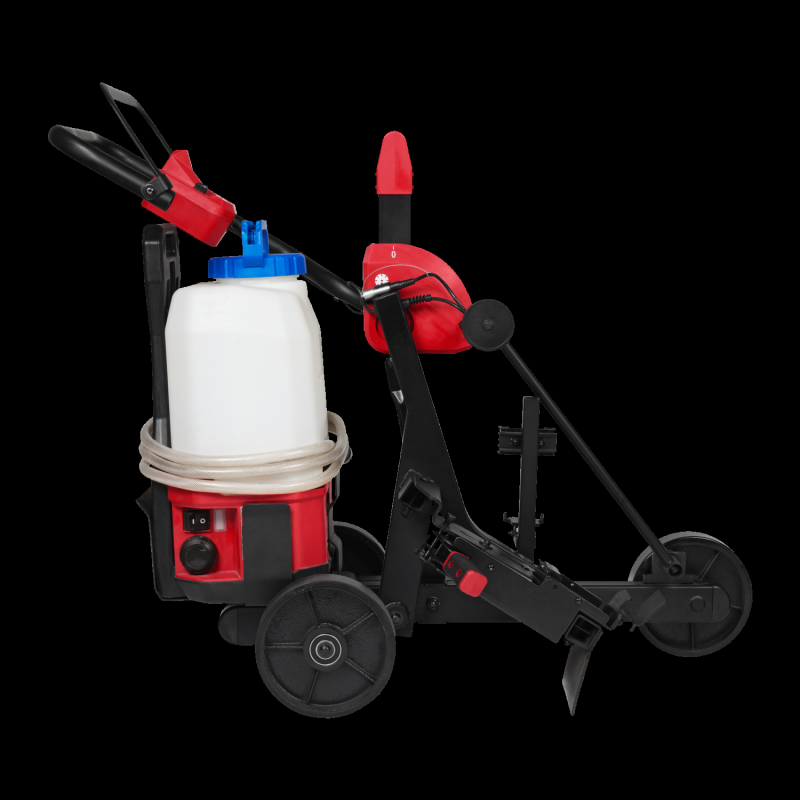 Carro de corte para cortadora de asfalto MX FUEL™ con capacidad de profundidad de corte de 125mm | Manillar de manejo ajustable en altura y manillar de ajuste de profundidad de fácil acceso para facilitar el uso con una sola mano | Ajuste de máquina y depósito de agua sin necesidad de herramientas compatible con el sistema intercambiable de pulverizador y suministro de agua M18™ SWITCH TANK™ | Completa movilidad con espacio para almacenamiento de batería de repuesto incluido | Para cortes rectos precisos y más largos en cemento u hormigón