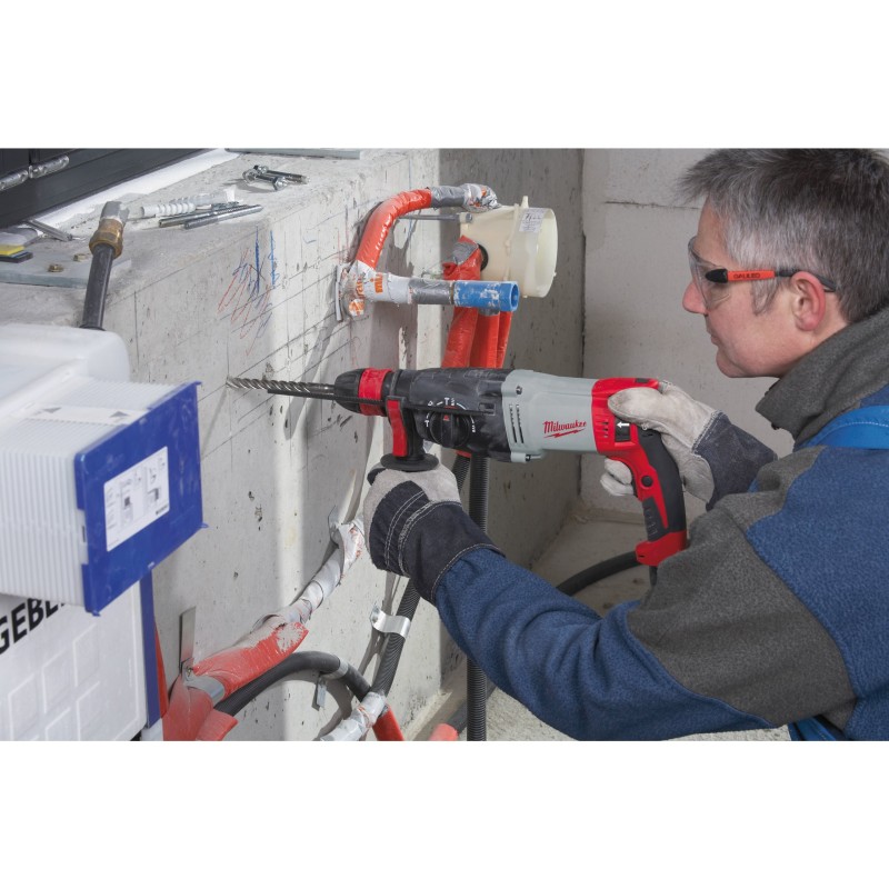 Golpeador sobre dimensionado suministra hasta 3,6J de energía de impacto | Motor 1.030W combinado con óptima velocidad de perforación suministra un gran rendimiento | Arranque suave para un comienzo preciso del taladrado/cincelado | Bajo nivel de vibración gracias al diseño ergonómico Softgrip de la empuñadura | Modo atenuador de martillo, reduce la energía de impacto en materiales sensibles | Cambio rápido del accesorio con sistema FIXTEC™ con portabrocas sin llave | Mayor durabilidad de su clase gracias a la tecnología de construcción en bloque en la caja de engranajes | Anillo portaescobillas de rotación (para tener la misma potencia en giro a derechas o izquierdas) | Embrague de seguridad para proteger al usuario y a la máquina en caso de que la broca se atasque | Cable de 4m