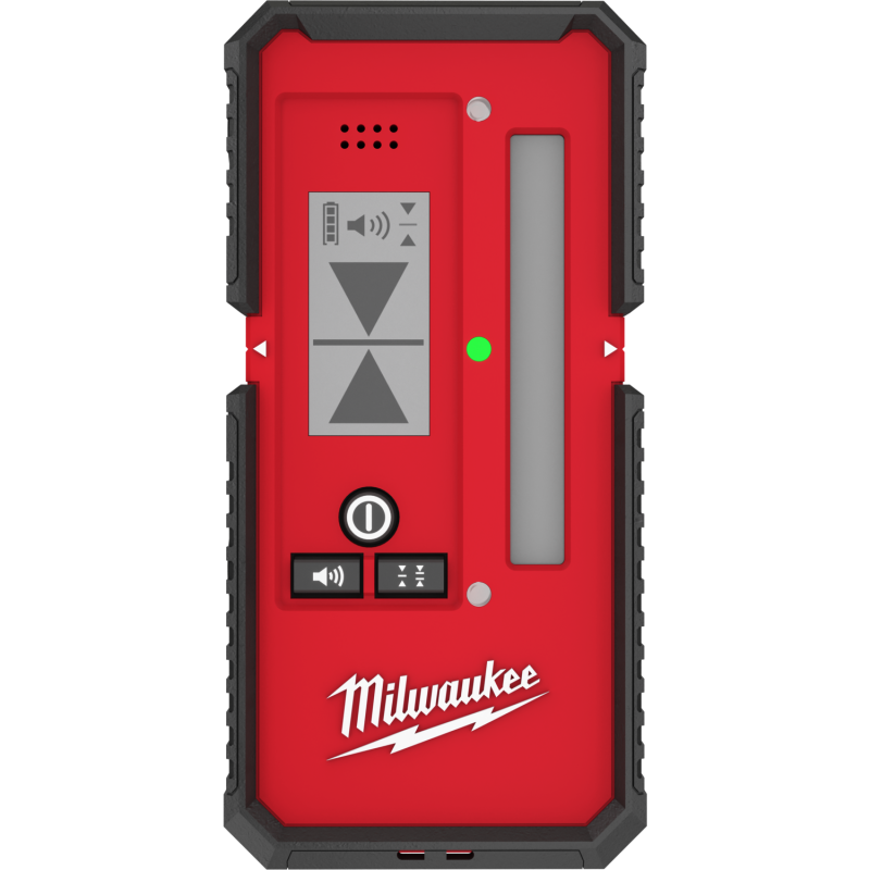 El detector de láser MILWAUKEE® amplía el rango del nivel láser hasta 50m | Los LEDs en la parte delantera y trasera permiten una detección fácil y precisa del haz para mejorar el proceso de configuración | Dos imanes en los laterales y pinza que permiten a los usuarios instalarlo en cualquier lugar, ideal para instalaciones de falsos techos | La pinza incluida ofrece una fácil fijación a superficies no metálicas | Cuenta con audio ajustable y más de 65 horas de funcionamiento con pilas AA incluidas | Compatible con todos los niveles láser de líneas MILWAUKEE® | Configuración de precisión ajustable para una mayor precisión | Clasificación IP54: protege del polvo y de las salpicaduras de agua | Resiste caídas de 1m