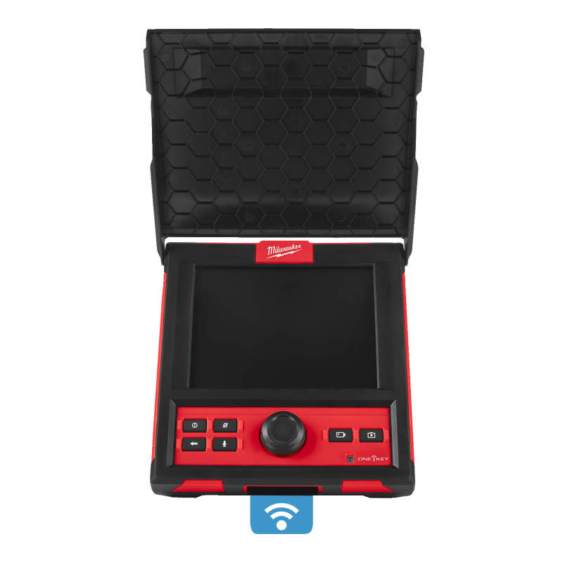 Pantalla inalámbrica LCD de 8″ de alta resolución, 800 x 600 | Pantalla preparada para leer en el sol, para una mejor inspección | Tecnología ONE-KEY™ que ofrece localización y seguridad, junto con el control del inventario, para poder realizar el seguimiento de la herramienta y ayudar a prevenir robos. ONE-KEY™ también cuenta con una función de bloqueo remoto de la herramienta | Función para reportar informes fácilmente, para transmitir los problemas en las tuberías | Graba vídeos y fotos para futuros informes creados en la obra | Puertos USB 3.0 y USB-C | Sistema flexible de baterías: funciona con todas las baterías M18™ de MILWAUKEE® | Conectar a M18™ SISH con cable USB-C para una conexión por cable