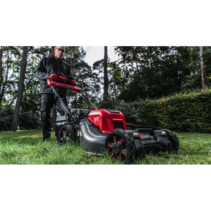La base de acero de 53cm y el diseño de la cuchilla combinados con la tecnología M18 FUEL™ proporcionan la mejor calidad de corte de su clase | Arranque instantáneo en hierba alta, potencia máxima excepcional y par de arranque suficiente para completar las aplicaciones más exigentes | Gestión de la hierba 3 en 1: mulching, recogida con bolsa y descarga lateral trasera | Ajuste automático de la velocidad de la cuchilla a la potencia requerida para una mayor eficiencia | Transmisión ajustable con 5 configuraciones de velocidad que ofrece una velocidad de corte de hasta 6,4km/h | Paleta de control activo de la velocidad para proporcionar al usuario un máximo control | Funciona con 2 baterías de M18™ para una mayor potencia y rendimiento | Autonomía para hasta 2.000m² con una sola carga de 2 baterías M18™ HIGH OUTPUT™ de 12.0Ah | Los luces delanteras y laterales ofrecen una visibilidad de 180° para una mayor precisión. Indicador de carga que ofrece una aproximación conservadora de los niveles de carga de las baterías | Ajuste de altura de corte con una sola palanca y 7 posiciones de 2,5 a 10cm para cubrir diferentes tipos de césped | Manillar plegable sin barra central y almacenamiento vertical para un transporte fácil y compacto | Incluye tapón de mulching, bolsa de 70l y deflector | El sistema HIGH OUTPUT™ eleva la tecnología M18 FUEL™ a un nuevo nivel y ofrece mayor rendimiento y autonomía. Este sistema está diseñado para maximizar el rendimiento de las máquinas con las baterías HIGH OUTPUT™ y FORGE™ | Sistema flexible de baterías: funciona con todas las baterías M18™ de MILWAUKEE®