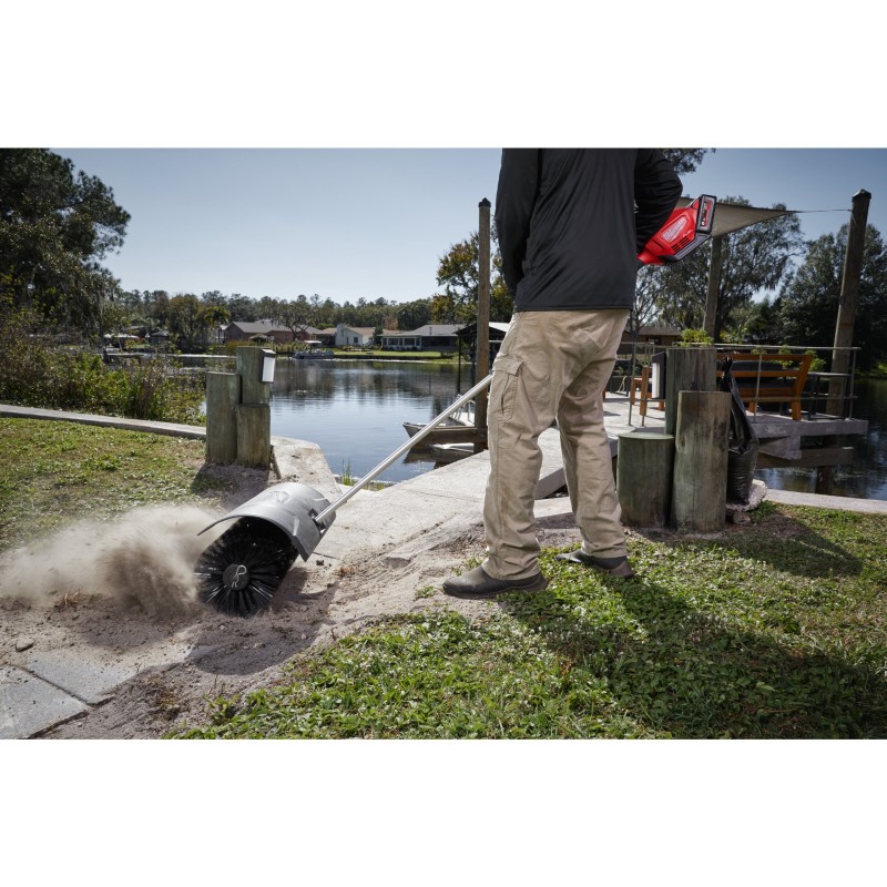 Limpieza de hojas húmedas, gravilla, arena, hierba y otros residuos de superficies duras como aceras, calzadas y patios | Limpia eficazmente entre las juntas de la acera | Contra-rotación del tambor para mover el material hacia adelante, manteniéndolo alejado del operador | Anchura de 58cm para una mayor capacidad de limpieza consiguiendo la mejor manipulación del material de una sola vez | Los robustos cepillos de cerdas garantizan una mayor vida útil | Diseño optimizado del protector para una mejor contención del material | Mantenimiento del césped sintético | Alcanza la velocidad máxima en menos de 1 segundo | Compatible con el sistema de accesorios de jardín QUIK-LOK™