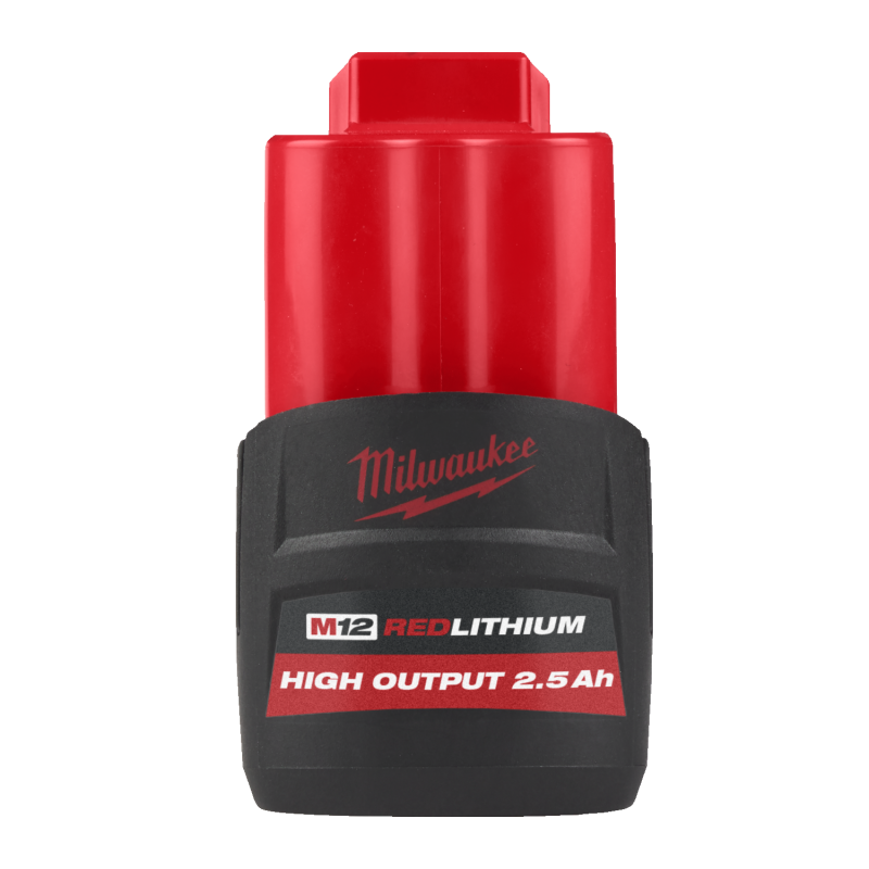 La nueva batería M12™ HIGH OUTPUT™ 2.5Ah proporciona hasta un 25% más de potencia frente a las baterías M12 REDLITHIUM™ de 2.0Ah | Se calienta un 25% menos que las baterías M12™ REDLITHIUM™ durante aplicaciones exigentes | Electrónica sofisticada: Inteligencia REDLINK™ | La protección contra sobrecargas evita que el usuario dañe su herramientas en aplicaciones abusivas | El sistema de gestión de la temperatura mantiene la batería a una temperatura ideal para proporcionar la máxima vida útil | Monitorización individual de las celdas que asegura una óptima carga y descarga para incrementar la durabilidad | La protección contra la descarga evita que la batería se dañe por sobredescarga | *Comparado con otras tecnologías de iones de litio y/o con la anterior tecnología de baterías MILWAUKEE®. Los resultados dependen del voltaje, la herramienta y la aplicación | Estructura duradera con separadores de absorción de impactos para evitar la rotura de la batería por caída o excesiva vibración | Se puede utilizar a temperaturas extremas de hasta -20°C sin comprometer ni la autonomía ni la vida útil de la batería | La protección contra la descarga evita que la batería se dañe por sobredescarga | Carcasa mejorada resistente a aceites, disolventes y grasas