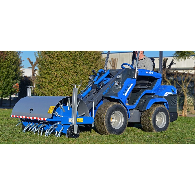 A MultiOne 7.2K é a carregadora articulada que combina força, precisão e conforto em um único equipamento. Equipada com um joystick multifuncional, oferece controle total sobre suas operações, permitindo manobras precisas e eficientes. Com luzes de trabalho integradas, garante máxima visibilidade em qualquer condição, tornando-se indispensável para tarefas em ambientes desafiadores.
