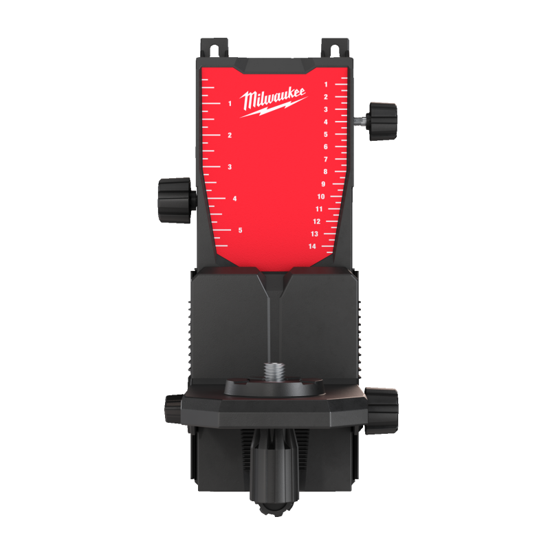 El microajuste vertical proporciona una alineación más precisa | Orificio para colgar y pinza para una instalación más versátil en paredes y techos | Tope de pared ajustable por tornillo para facilitar la autonivelación del nivel láser | Regla métrica para facilitar la configuración del nivel láser | Compatible con todos los niveles láser rotativos y todos los niveles láser MILWAUKEE® M12™