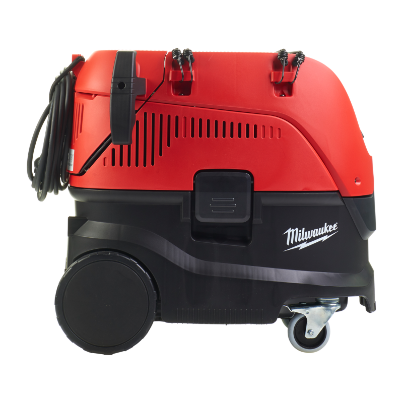 Tanque compacto de 30 litros para trabajos en obra o en taller | Volumen de aire de 4.500l/min con 250mbar de succión | Clase L. MAK-factor > 1mg/m³ | Enchufe con conexión / desconexión automática cuando se utiliza con herramientas eléctricas | Filtro PTFE duradero con gran eficiencia de filtrado, lavable y con membrana antiadherente | Limpieza automática de filtro con mínima pérdida de rendimiento | Puerta de fácil acceso al filtro para un mantenimiento y limpieza conveniente | Turbina super silenciosa para un bajo nivel de ruido | Carcasa antiestática para evitar calambres causados por la electricidad estática | Suministrado con 2x adaptadores de máquina, tobera curva de mano, 2x extensiones de tubo, tobera para suelo, para ranuras y universal, bolsa de plástico, bolsa de papel y manguera