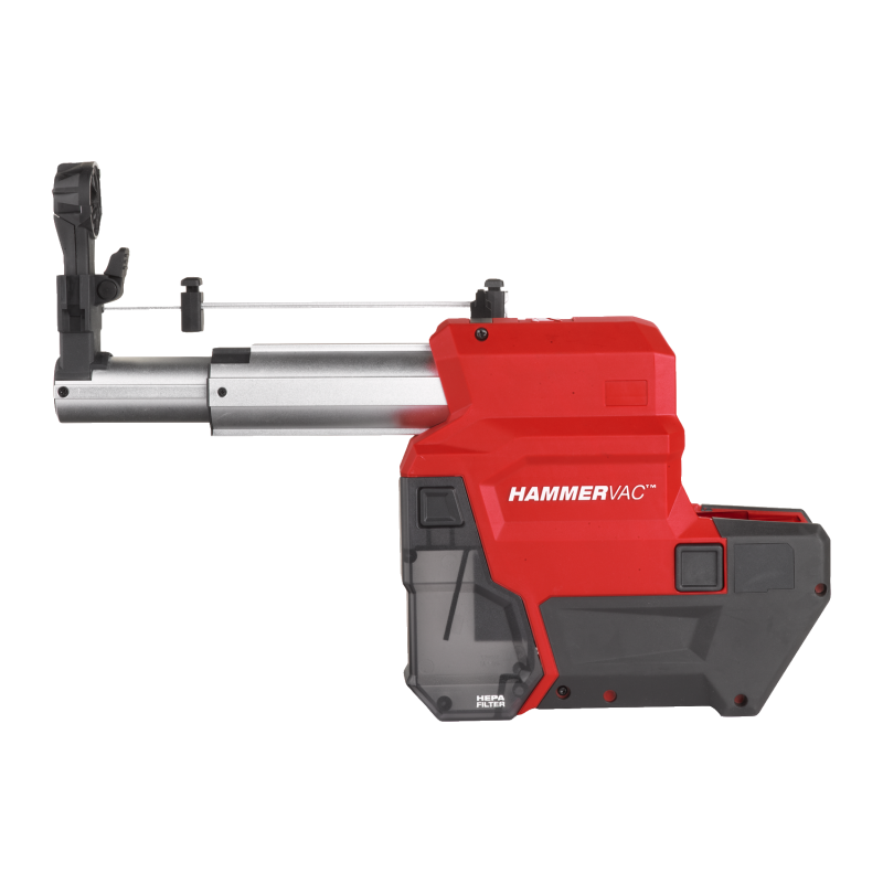 Diseñado para recoger el polvo de manera eficiente con función automática desde el interruptor de encendido/apagado de la máquina | AUTOPULSE™ es el primer mecanismo de limpieza de filtro automático de la industria para un extractor de polvo acoplado a la herramienta, aumentando la eficiencia del flujo de aire y la vida útil del filtro | El filtro HEPA de alta eficiencia atrapa el 99,97% de las partículas hasta 0,3 micras | El depósito de polvo translúcido permite al usuario ver el nivel de polvo en el interior, así como cuando está lleno | El depósito de polvo con puerto de aspiración permite al usuario conectar un aspirador y aspirar el polvo del depósito. Optimizado para su uso con el aspirador AS 30 LAC de 30l y el adaptador DEK26 (4931447295) | Boquillas intercambiables para adaptarse a los diferentes diámetros de perforación. Se suministra con 2 tamaños de boquilla: 1x hasta ⌀16mm, 1x hasta ⌀26mm, que se pueden cambiar rápidamente gracias al mecanismo de bloqueo rápido | El tubo de extracción de aluminio es ajustable según el tamaño de la broca hasta 210mm de profundidad | Tope de profundidad ajustable con botones de ajuste fáciles y precisos para profundidades consistentes | Tope de profundidad extraíble y conmutable, en caso de que el usuario prefiera el otro lado | Luz LED para iluminar la zona de trabajo | Compatible con los martillos M18 FH, M18 FHX, M18 ONEFH y M18 ONEFHX
